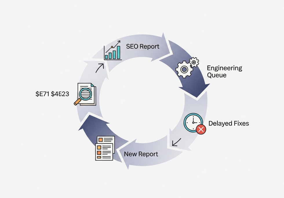 Every month, the same exhausting cycle repeats. Your SEO team runs a Semrush report and finds dozens of technical issues. The report lands on engineering's desk, where it's seen as an annoying distraction from "real" work. Weeks or months pass before issues get addressed. Then a new report arrives with new problems, and the cycle continues indefinitely.