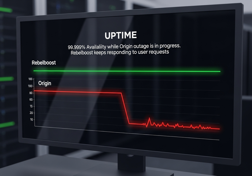 When your origin has issues, RebelBoost becomes your insurance policy. We automatically detect origin downtime and continue serving optimized content from cache. Revalidation attempts pause until your origin recovers.