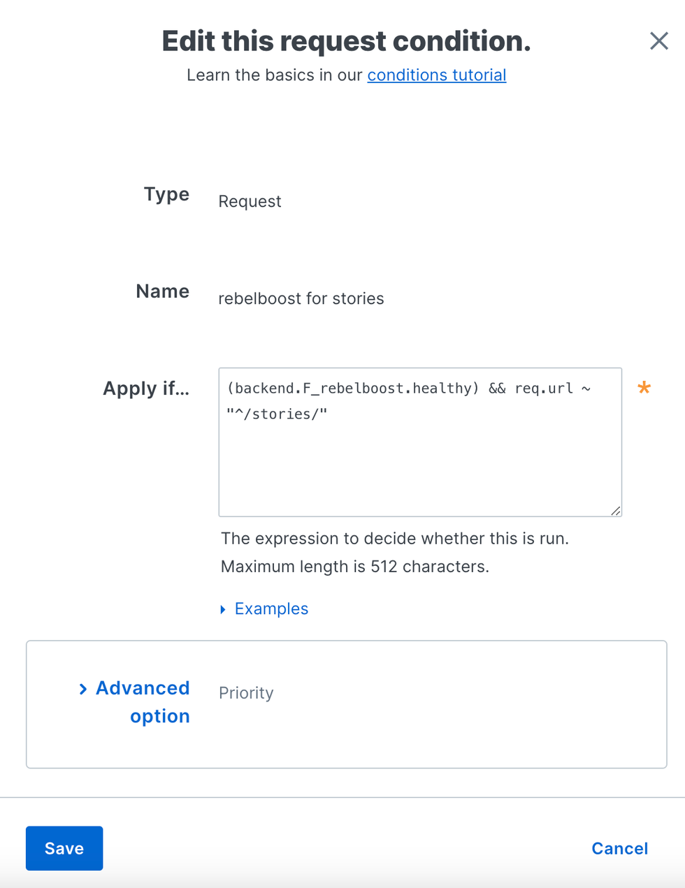 req.url ~ "^/stories/"Then click 'Save and apply ...'