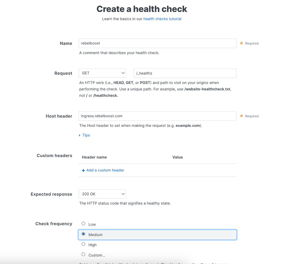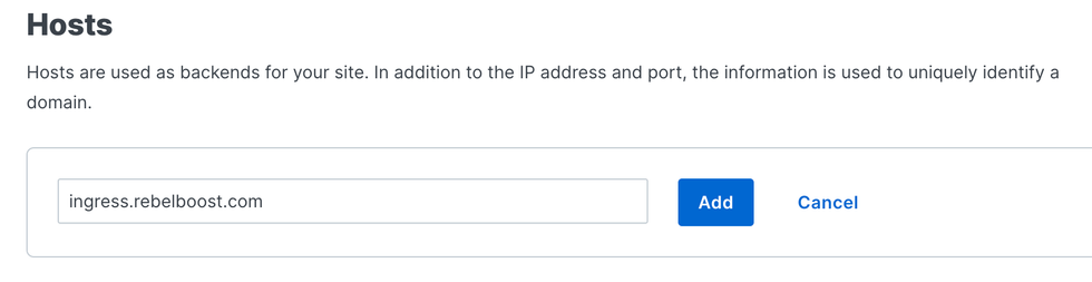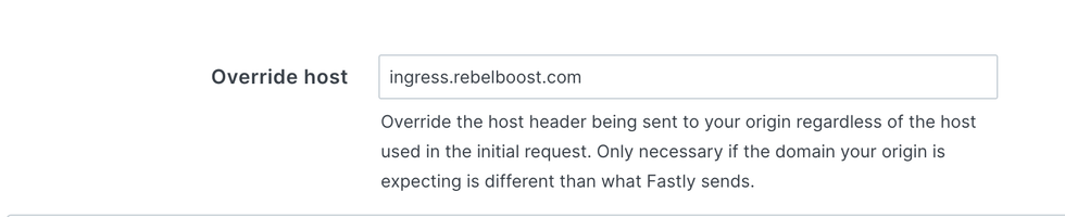 Set Override host ingress.rebelboost.com. Leave default values in other fields. Click 'Update' to save the changes.