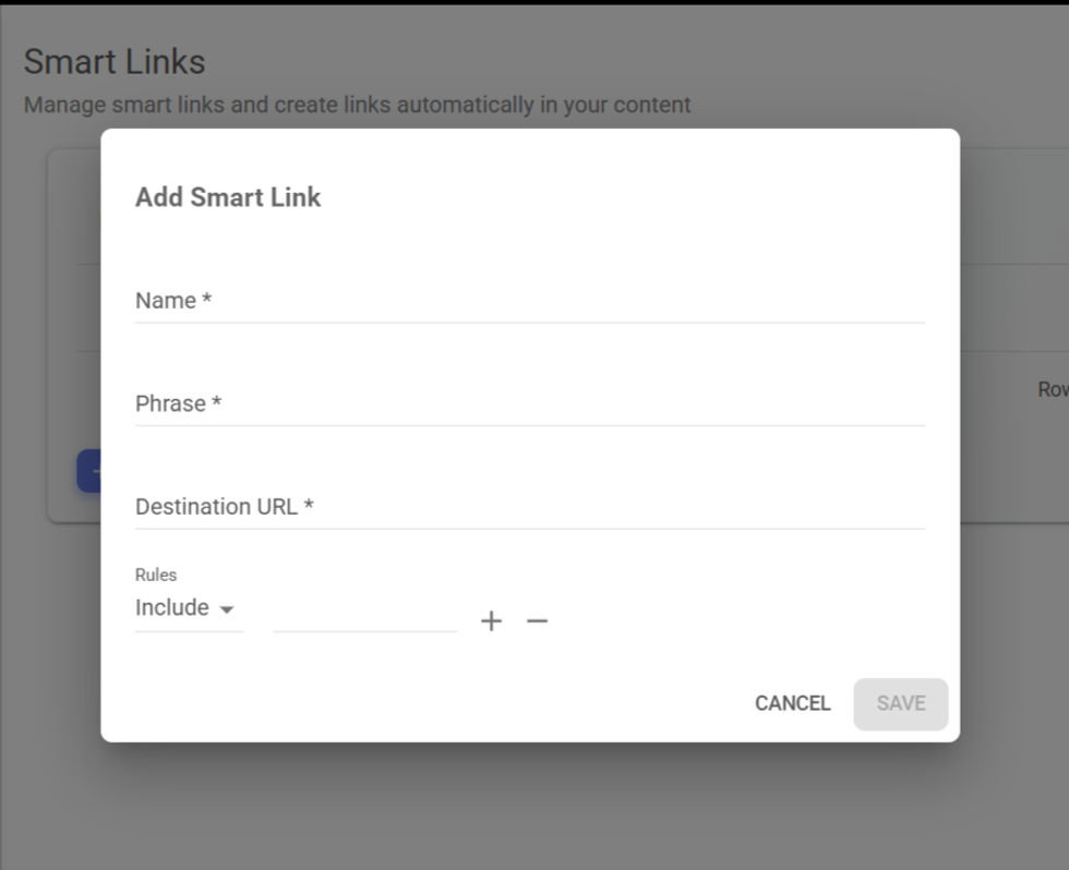 - Rules is an optional field that lets you include or exclude articles from specific sections when applying SmartLinks.